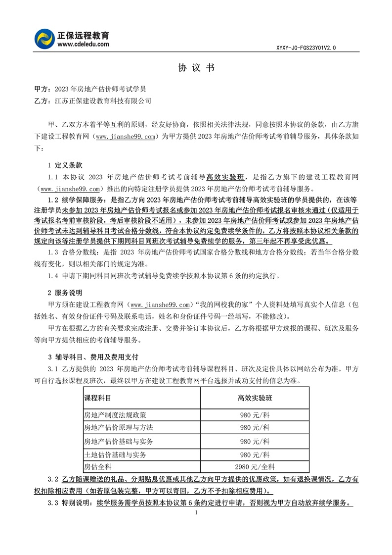 2023年房地產(chǎn)估價師高效實(shí)驗(yàn)班協(xié)議書