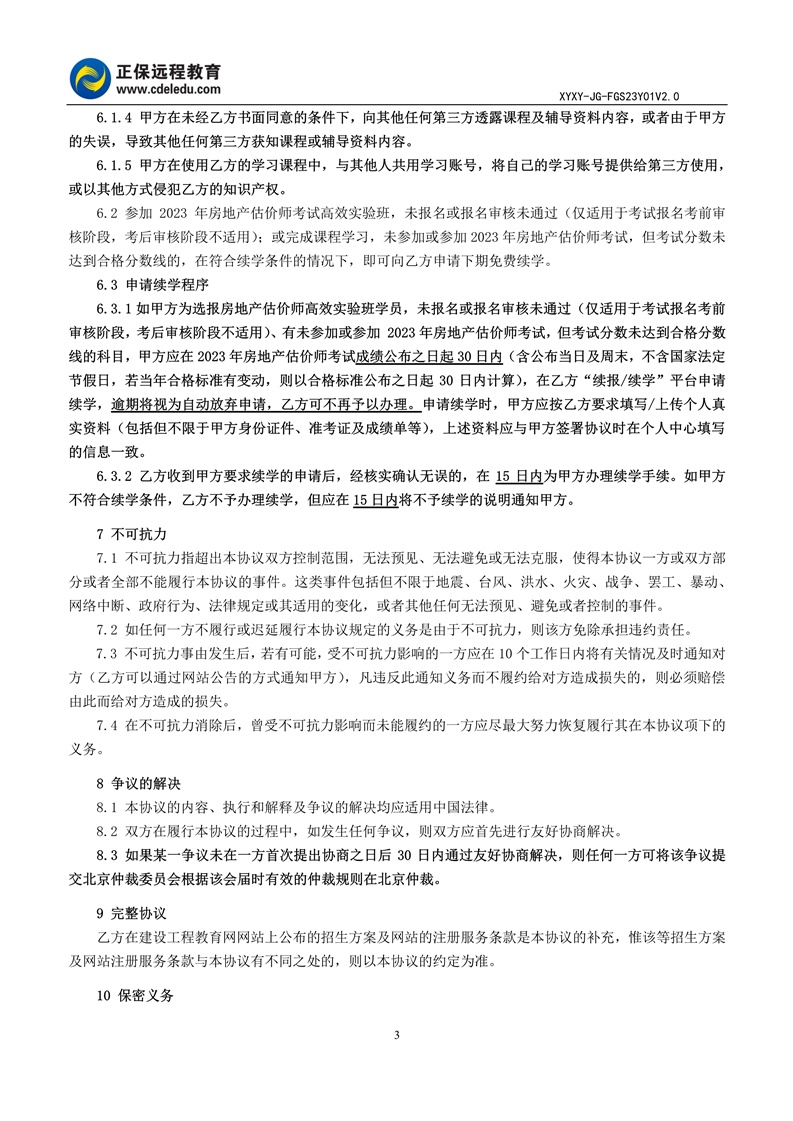 2023年房地產(chǎn)估價師高效實驗班協(xié)議書