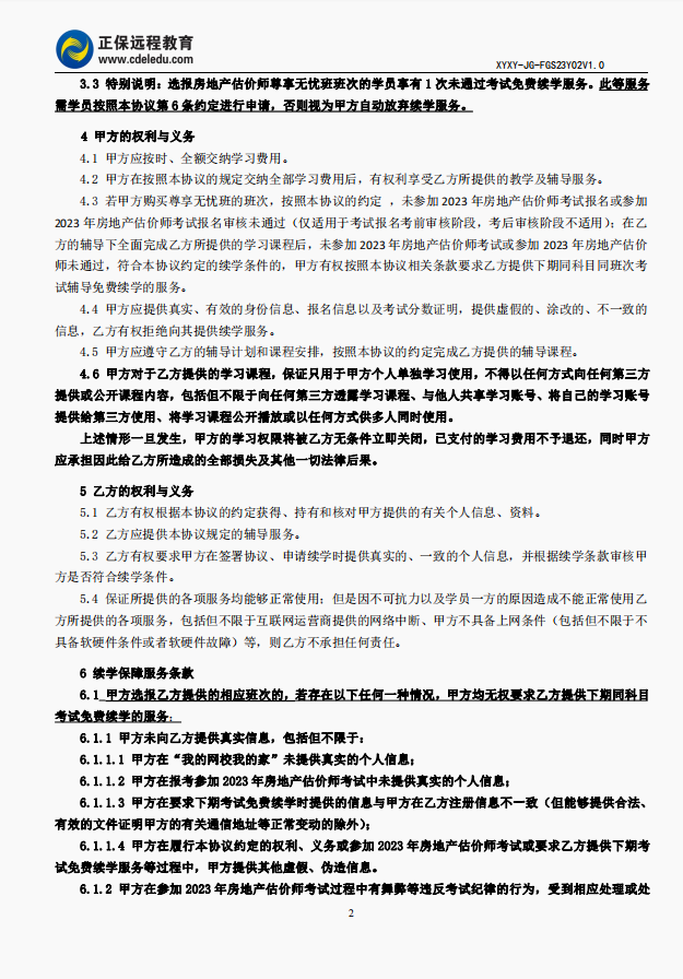 2023年房地產(chǎn)估價(jià)師尊享無憂班協(xié)議書