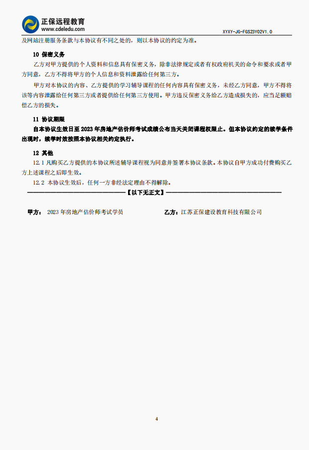 2023年房地產(chǎn)估價(jià)師尊享無憂班協(xié)議書