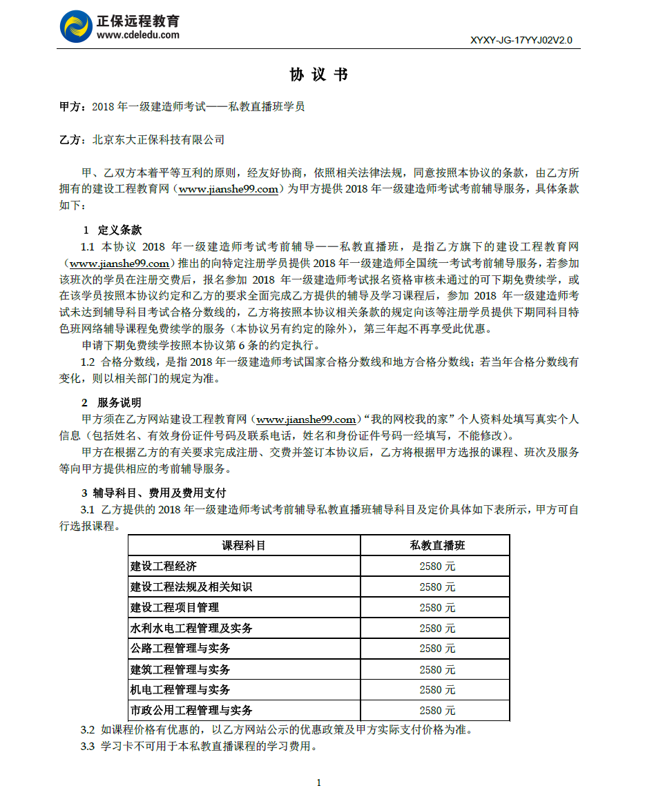 一級(jí)建造師私教直播班協(xié)議書