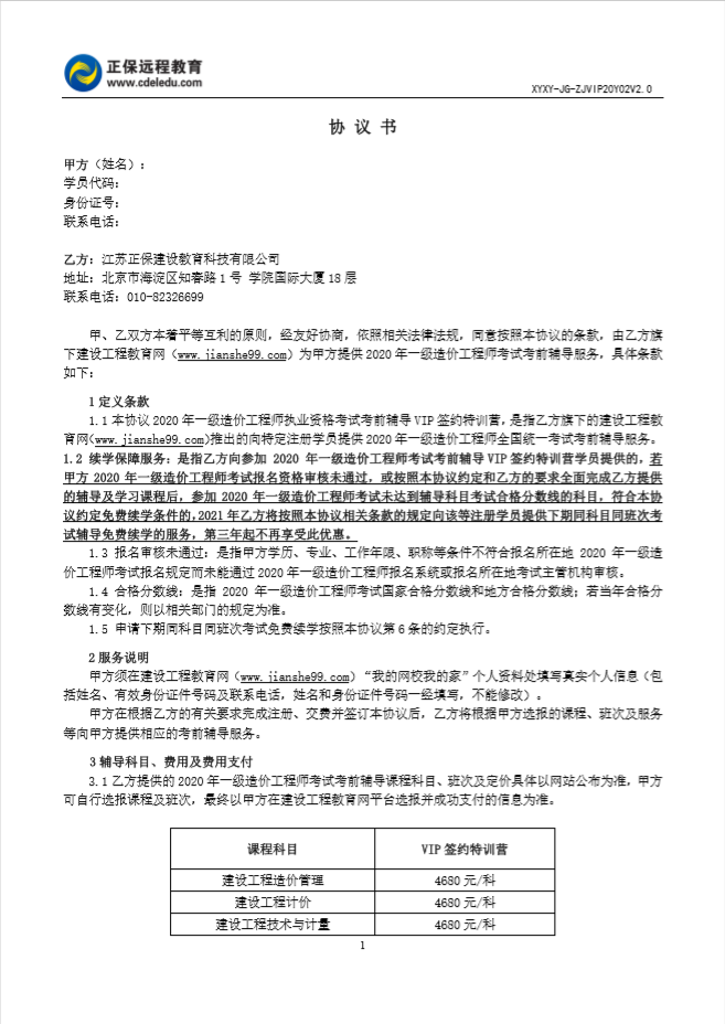 一級(jí)造價(jià)工程師協(xié)議書(shū)