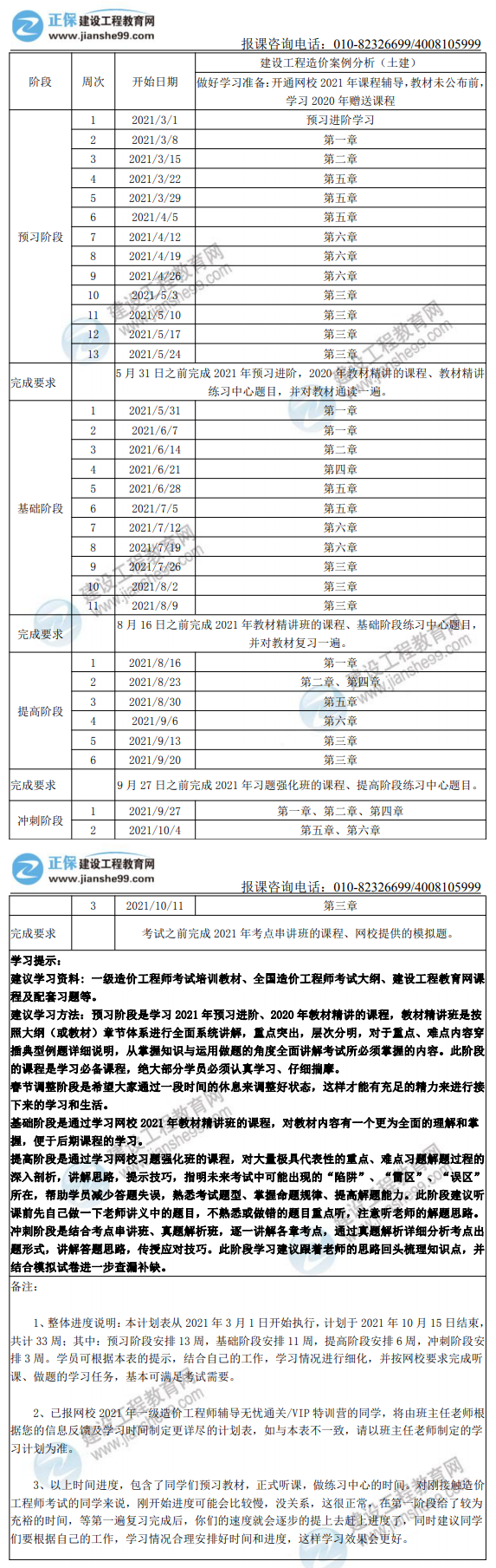 2021年一級(jí)造價(jià)師土建案例全年學(xué)習(xí)計(jì)劃