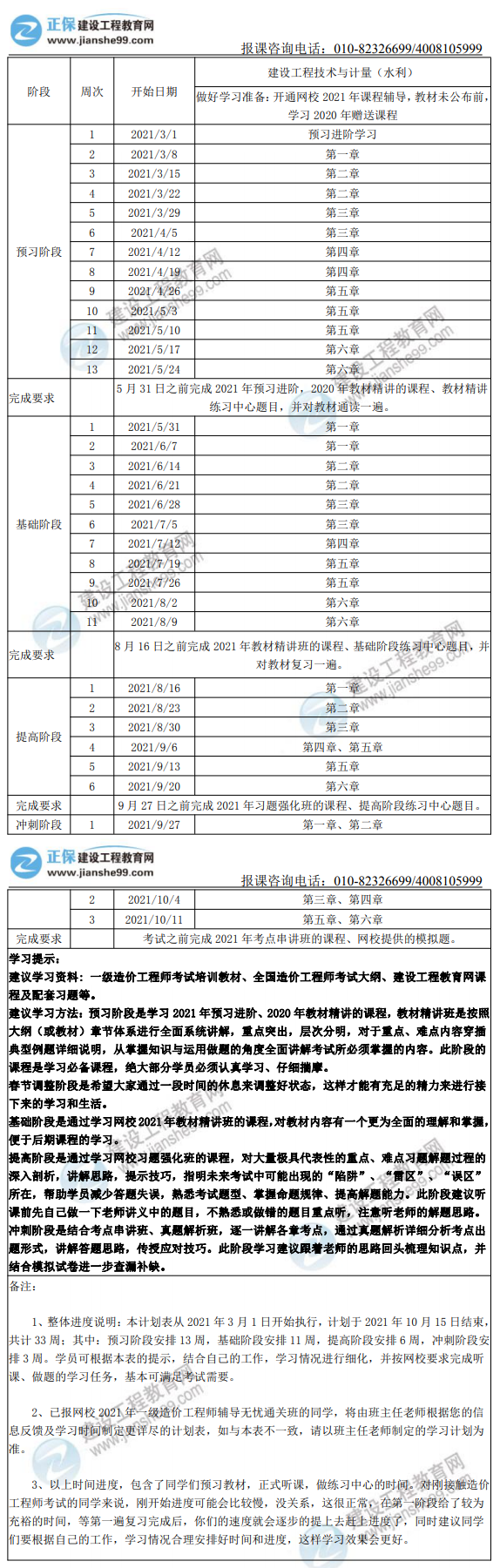 2021年一級造價師水利計量全年學(xué)習(xí)計劃