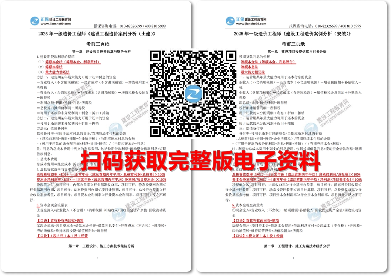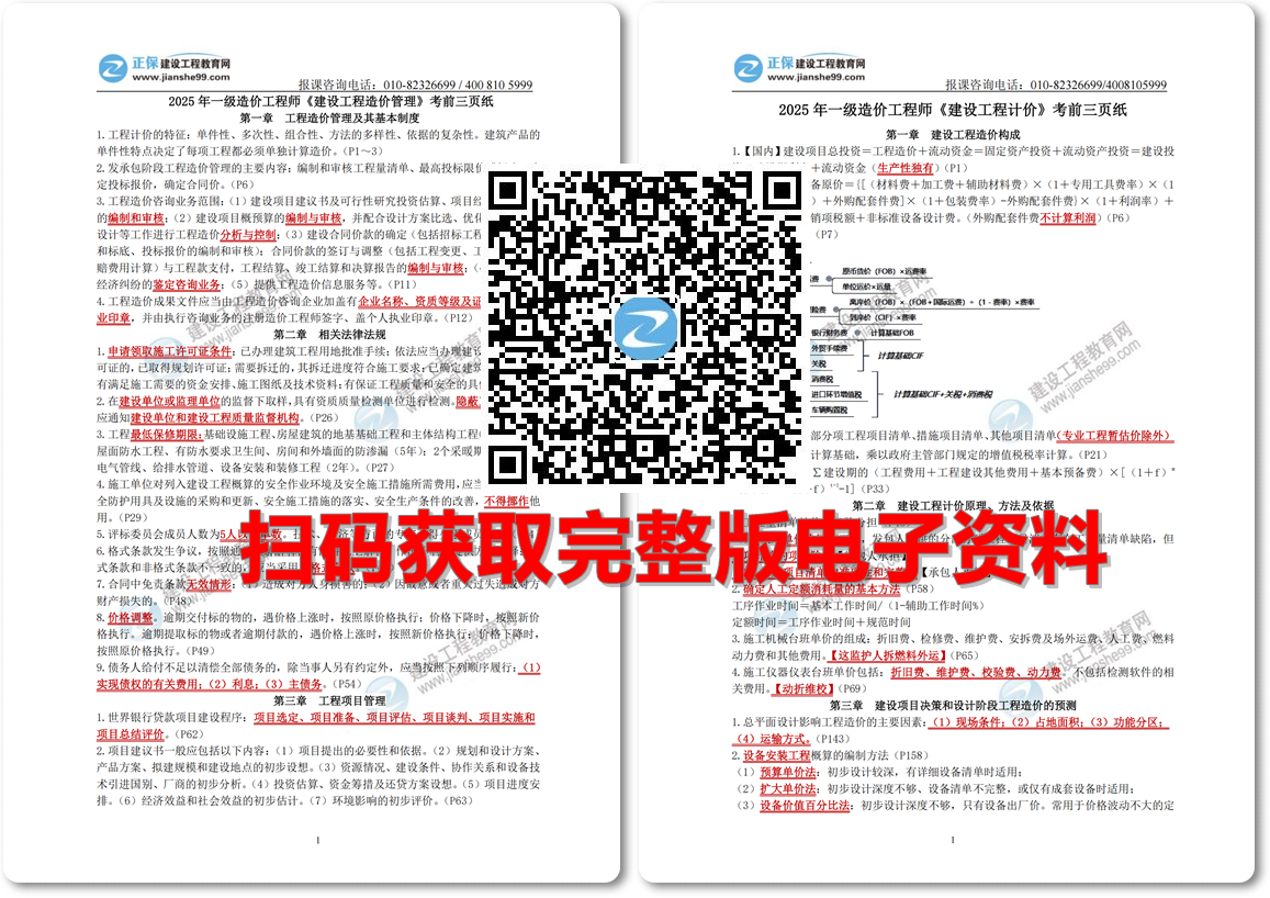 別再猶豫,抓住最后的備考時(shí)機(jī)。掃碼免費(fèi)領(lǐng)取考前三頁(yè)紙,讓它們成為你沖刺備考的加速器。相信自己,通過(guò)努力和科學(xué)備考,你一定能在2025年的一級(jí)造價(jià)師考試中取得優(yōu)異的成績(jī)!