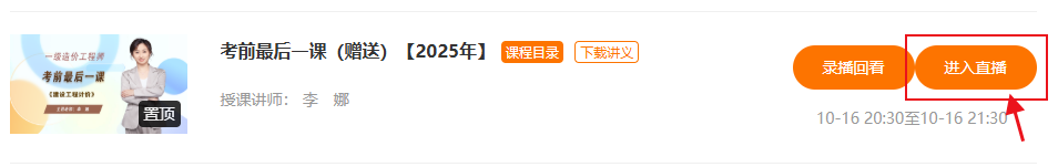 2025年一造《工程計價》付費考生登錄我的網(wǎng)校我的家,選擇“考前最后一課(贈送)”進(jìn)入觀看學(xué)習(xí)。