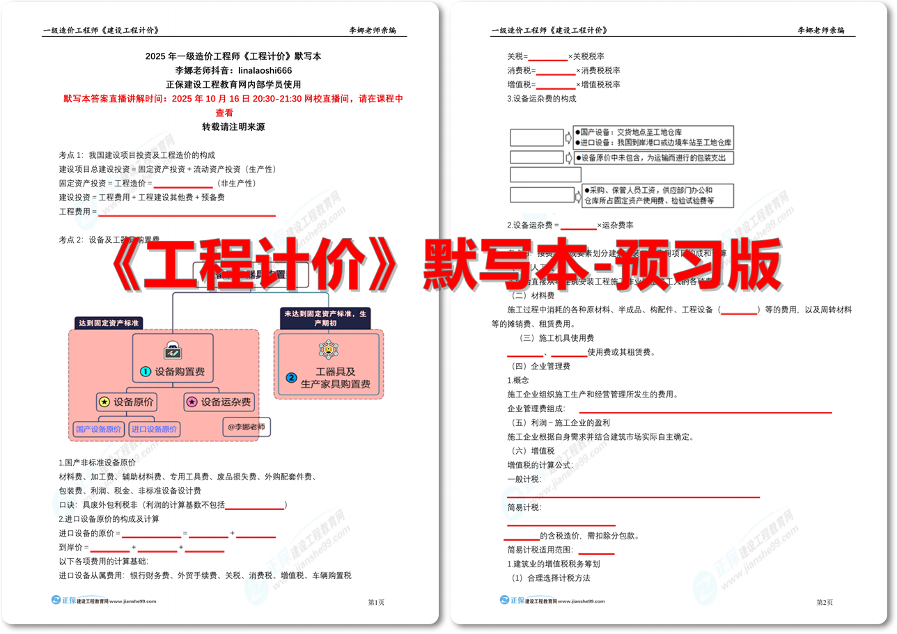 直播主題:2025年一造《工程計價》考前默寫直播