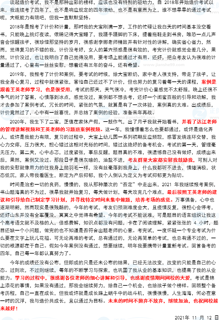 #一級造價(jià)師# 四年的備考之路,感謝網(wǎng)校的一路陪伴!