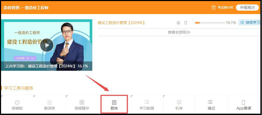 題庫(kù)入口(造價(jià)管理為例):