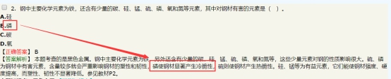 【試題1】鋼材元素中,含量較多會(huì)嚴(yán)重影響鋼材冷脆性的元素是(?。?。