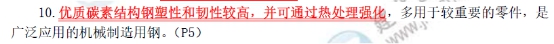 【試題2】某種鋼材含碳量小于0.8%,其所含的硫、磷及金屬夾雜物較少,塑性和韌性較高,廣泛應(yīng)用于機(jī)械制造,當(dāng)含碳量較高時(shí),具有較高的強(qiáng)度和硬度,主要制造彈簧和耐磨零件,此種鋼材為()。