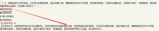 【試題3】某酸性耐火材料,抗酸性爐渣侵蝕能力強(qiáng),易受堿性爐渣侵蝕,主要用于焦?fàn)t,玻璃熔窖、酸性煉鋼爐等熱工設(shè)備,該耐火材料為(?。?。