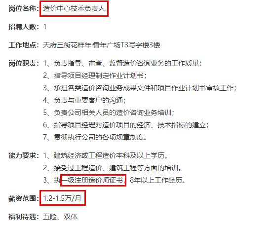 拿到一級造價師證書的朋友這份高薪工作你值得擁有!