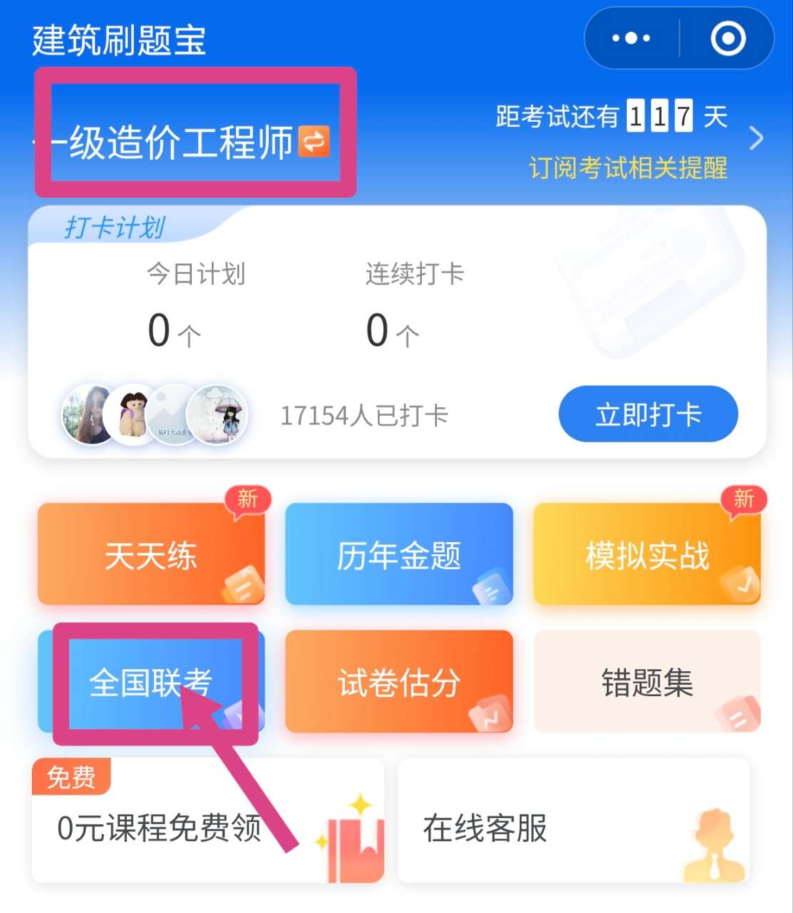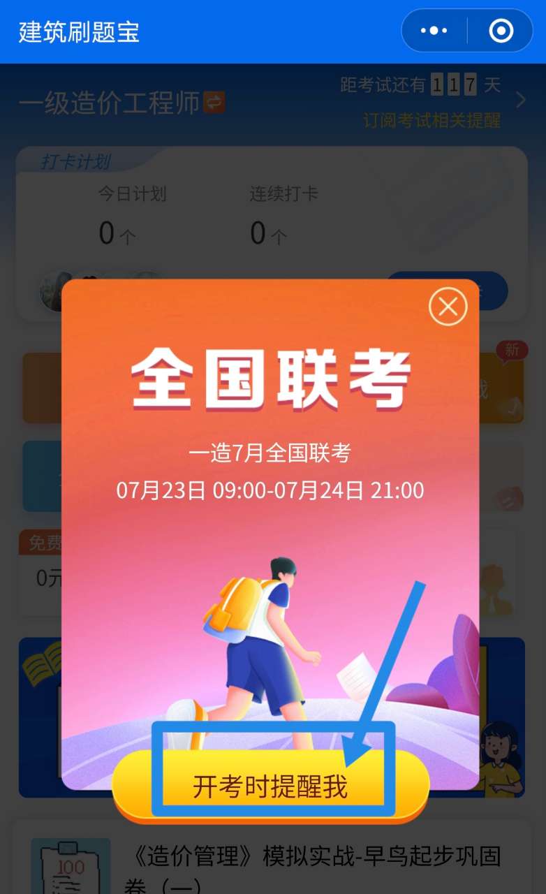 (3)進入全國聯(lián)考后,點擊開考時提醒我,即可成功預(yù)約免費聯(lián)考。