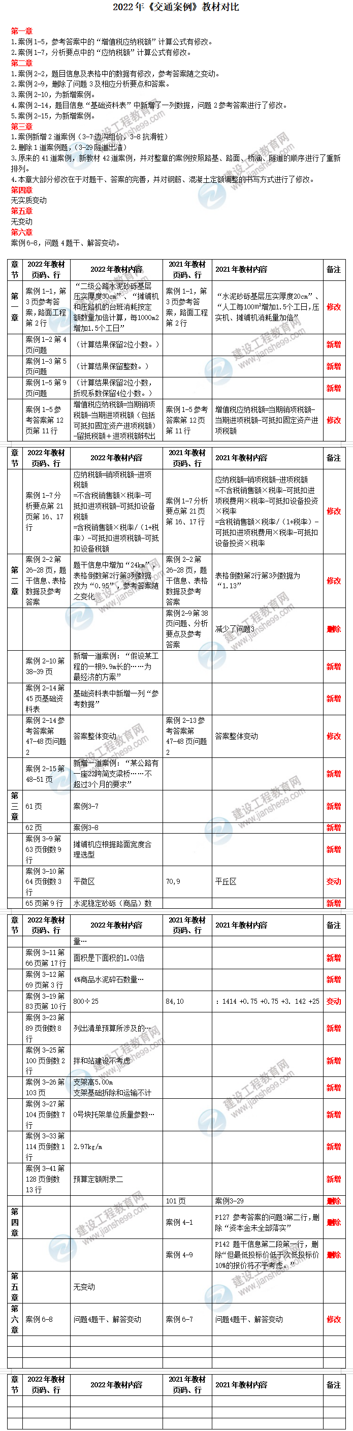 2022一級(jí)造價(jià)師交通案例新舊教材對(duì)比