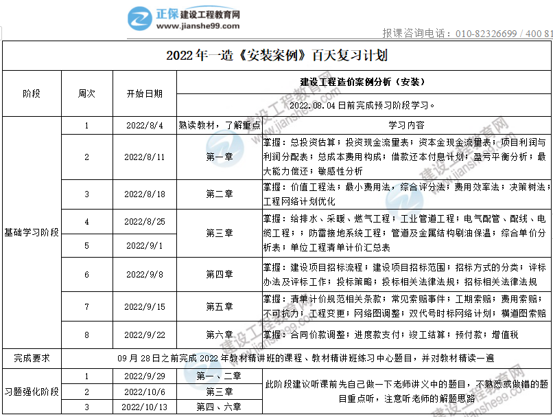 2022年一造《安裝案例》百天復(fù)習(xí)計(jì)劃