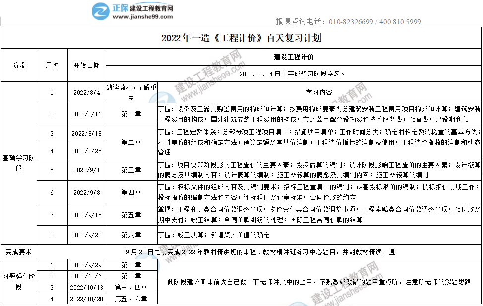 2022年一造《工程計(jì)價(jià)》百天復(fù)習(xí)計(jì)劃
