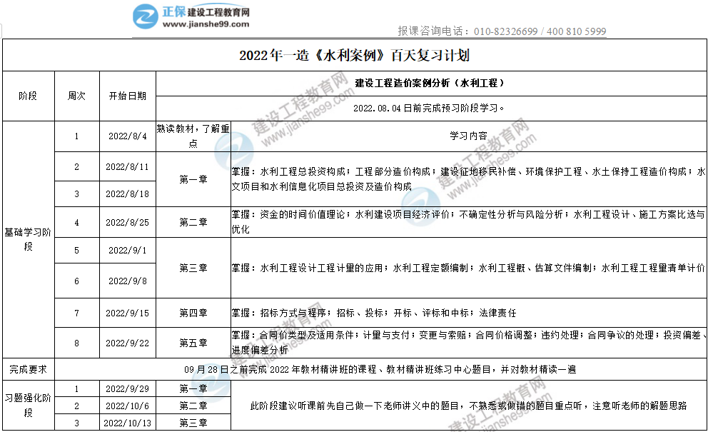 2022年一造《水利案例》百天復(fù)習(xí)計劃