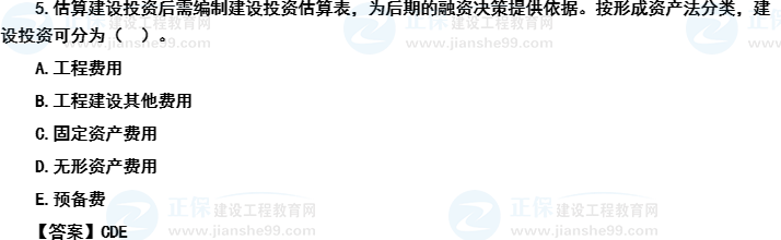 選項(xiàng)A屬于概算法分類的工程費(fèi)用的構(gòu)成,選項(xiàng)E屬于形成資產(chǎn)法分類中其他資產(chǎn)費(fèi)用的內(nèi)容。