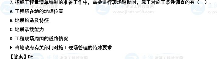 也可以通過排除法去選擇合適的選項(xiàng)。選項(xiàng)ABC均屬于現(xiàn)場(chǎng)踏勘中的自然地理?xiàng)l件的調(diào)查內(nèi)容。