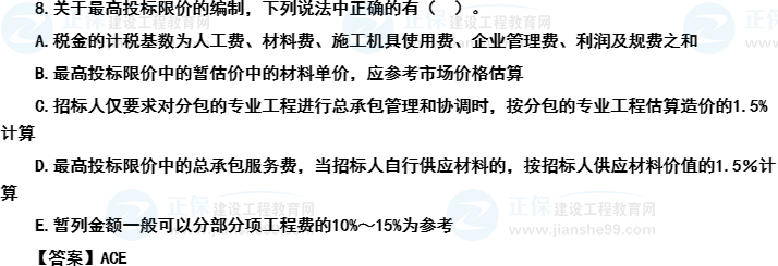 選項(xiàng)B描述有誤,正確的理解應(yīng)該是最高投標(biāo)限價(jià)中的暫估價(jià)的材料單價(jià)應(yīng)按照工程造價(jià)管理機(jī)構(gòu)發(fā)布的工程造價(jià)信息中的材料單價(jià)計(jì)算,如果未發(fā)布時(shí),其單價(jià)才去參考市場(chǎng)價(jià)格估算。