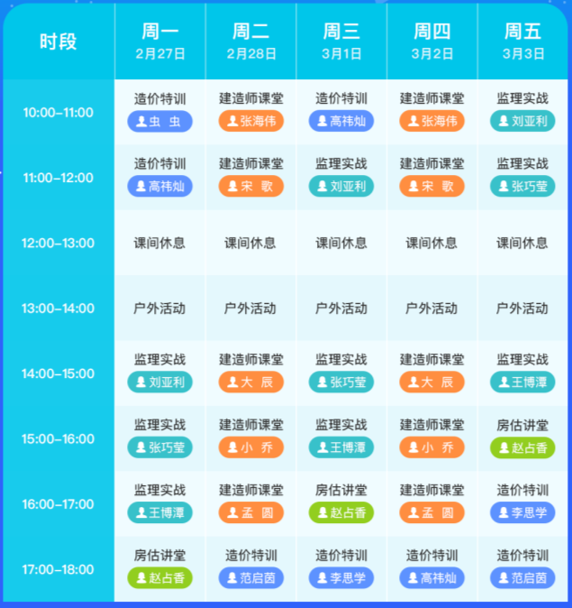 直播時間:每周一至周五,上午10:00-12:00,下午14:00-18:00,各輔導(dǎo)直播安排見下方課表