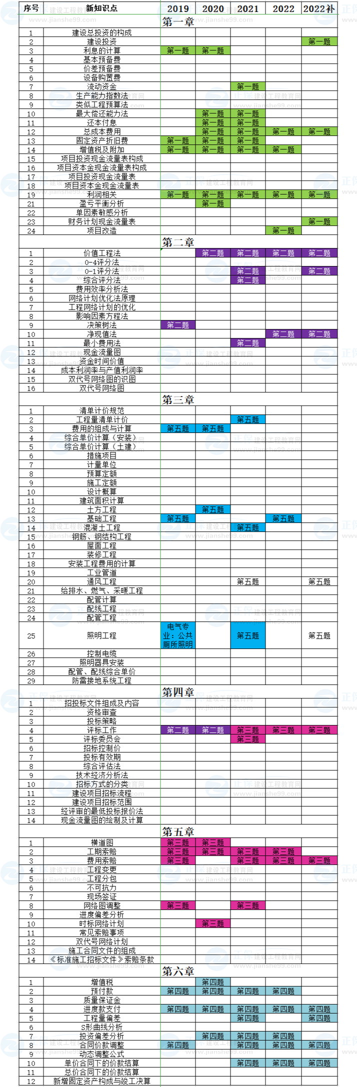 2019-2022年一級(jí)造價(jià)師土建/安裝分值分布匯總: