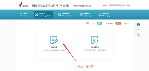 3.點(diǎn)擊“中國高等教育學(xué)歷認(rèn)證報(bào)告”中的“網(wǎng)上申請”按鈕。