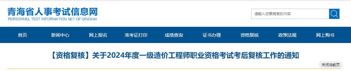 青海省2024年一級造價工程師職業(yè)資格考試考后復核工作的通知