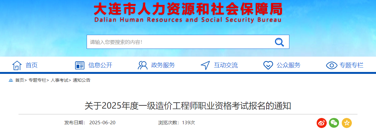 大連考點2025年度一級造價工程師職業(yè)資格考試報名通知