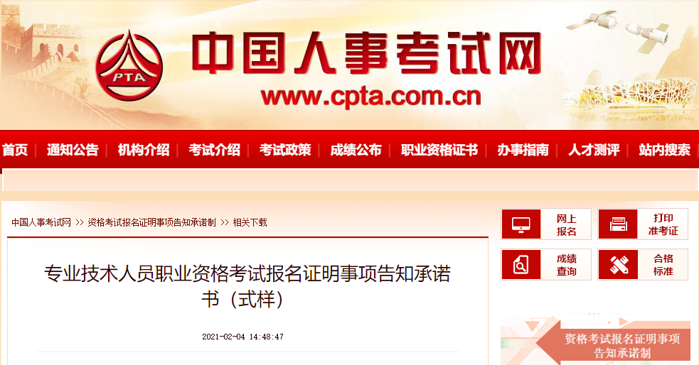 附件下載:專業(yè)技術(shù)人員職業(yè)資格考試報(bào)名證明事項(xiàng)告知承諾書(式樣)