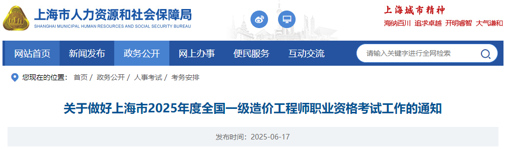 上海市2025年度全國一級造價工程師職業(yè)資格考試工作的通知