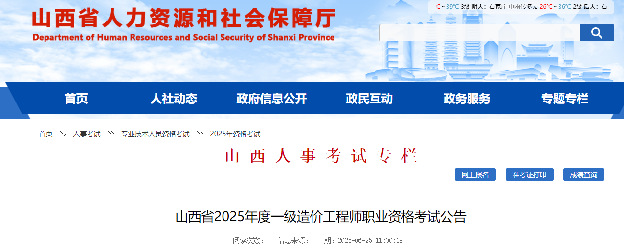 山西省2025年度一級造價工程師職業(yè)資格考試公告