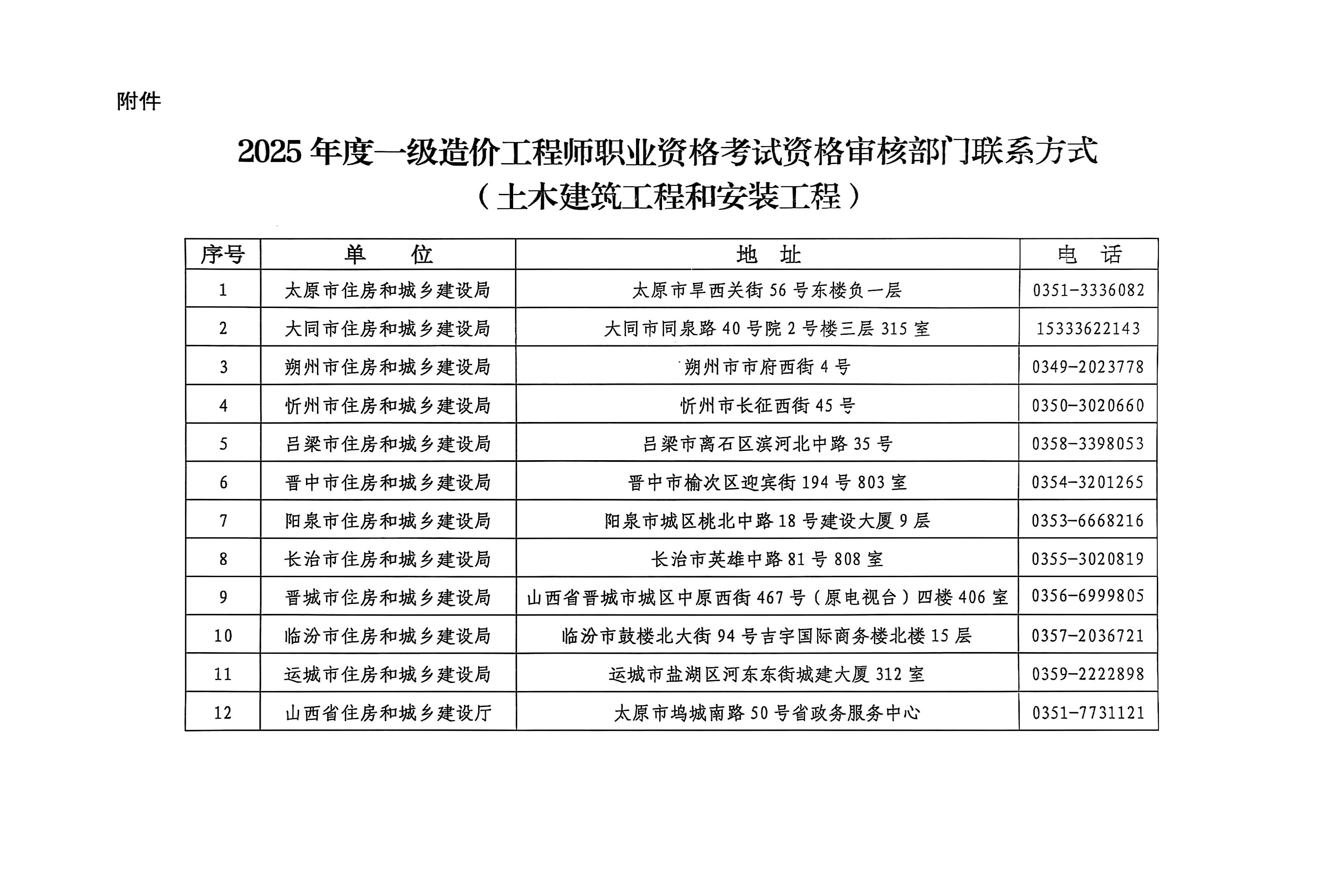 附件:2025年度一級造價工程師職業(yè)資格考試資格審核部門聯(lián)系方式(土木建筑工程和安裝工程)