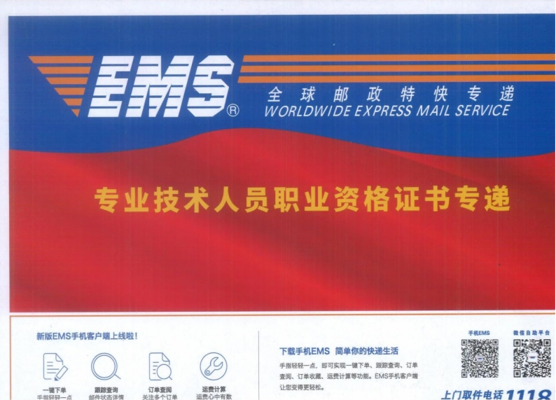 證書直郵由中國郵政EMS承接郵寄服務(wù),郵件從福建發(fā)出,標(biāo)注“專業(yè)技術(shù)人員職業(yè)資格證書專遞”(樣式見附件),郵寄費(fèi)用采取到付方式。