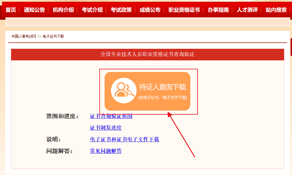 第一步:打開(kāi)中國(guó)人事考試網(wǎng)-點(diǎn)擊“電子證書(shū)下載”