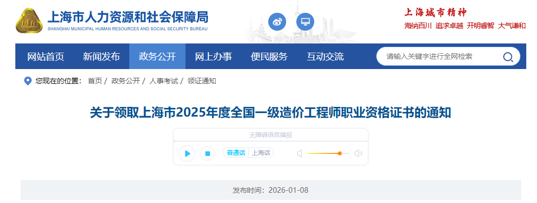 上海市2025年度全國一級造價工程師職業(yè)資格證書領(lǐng)取通知