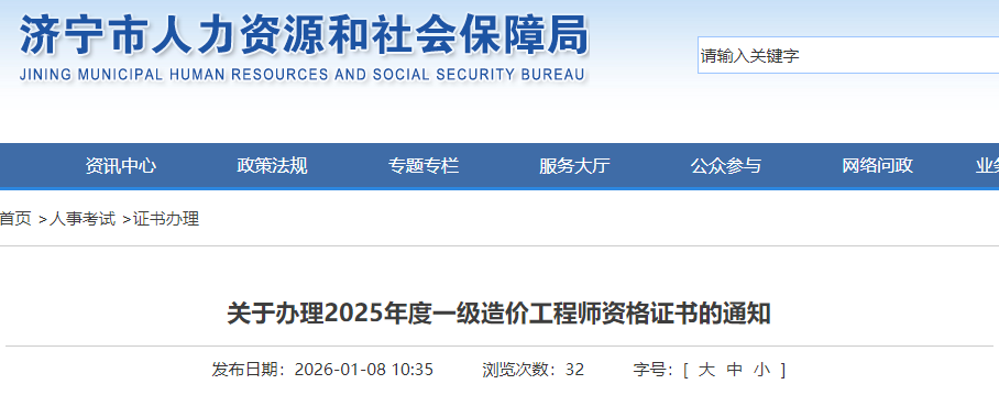 山東濟(jì)寧關(guān)于辦理2025年度一級(jí)造價(jià)工程師資格證書(shū)的通知