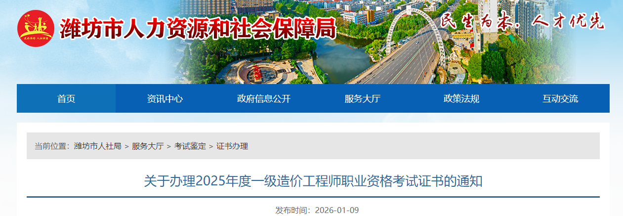 山東省濰坊市2025年度一級(jí)造價(jià)工程師職業(yè)資格考試證書辦理通知