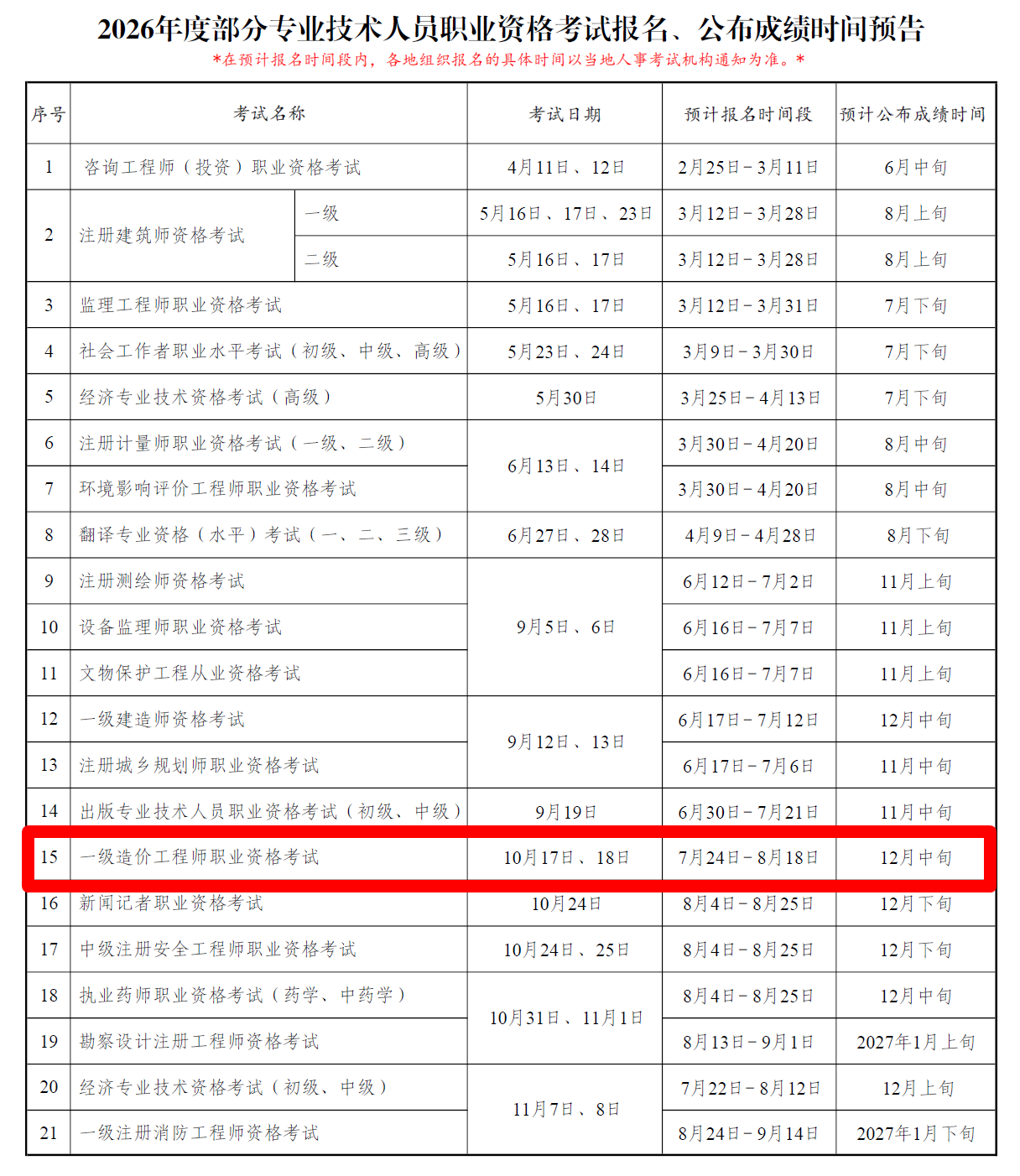 2026年全國一級(jí)造價(jià)師考試確定!10月17日、18日舉行考試!
