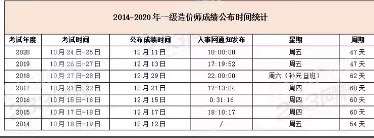 而歷年的一造成績公布時(shí)間如下圖: