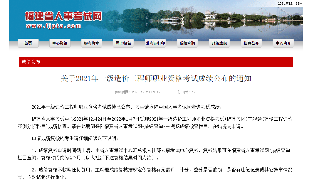 福建省2021年一級(jí)造價(jià)工程師職業(yè)資格考試成績公布的通知