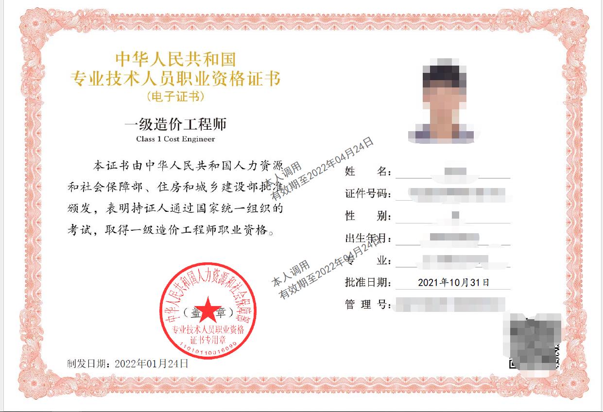一級(jí)造價(jià)師電子證書(shū)下載入口: