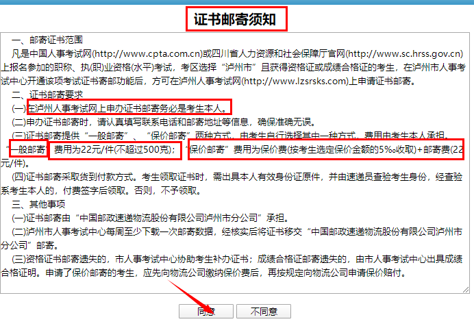3、仔細閱讀證書郵寄須知,讀完之后點擊同意;