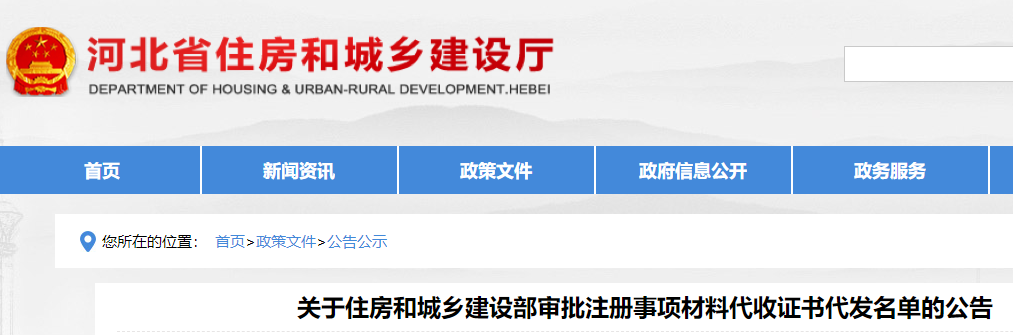 河北關(guān)于一級造價師審批注冊事項材料代收證書代發(fā)名單的公告