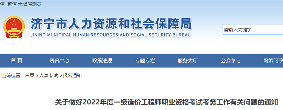 濟(jì)寧2022年一級(jí)造價(jià)工程師職業(yè)資格考試考務(wù)工作有關(guān)問題的通知