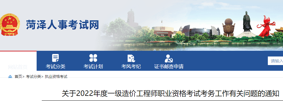 菏澤2022年一級(jí)造價(jià)工程師職業(yè)資格考試考務(wù)工作有關(guān)問(wèn)題的通知