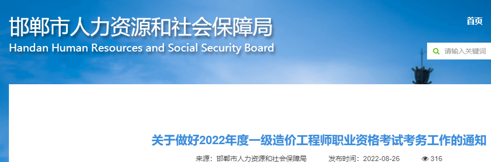 邯鄲2022年一級(jí)造價(jià)工程師職業(yè)資格考試考務(wù)工作的通知