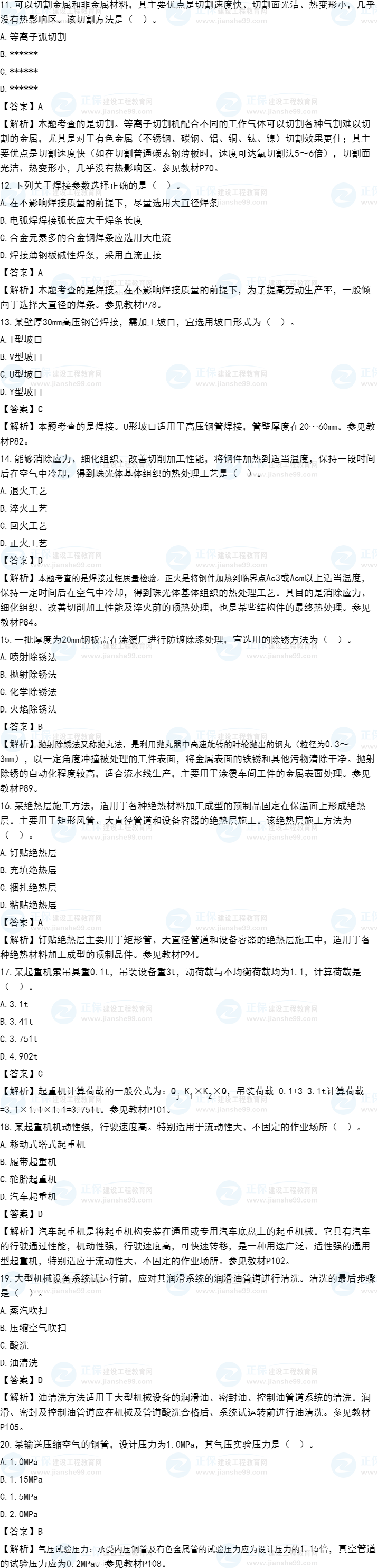 2021年一級(jí)造價(jià)師《安裝計(jì)量》試題答案及解析11-20