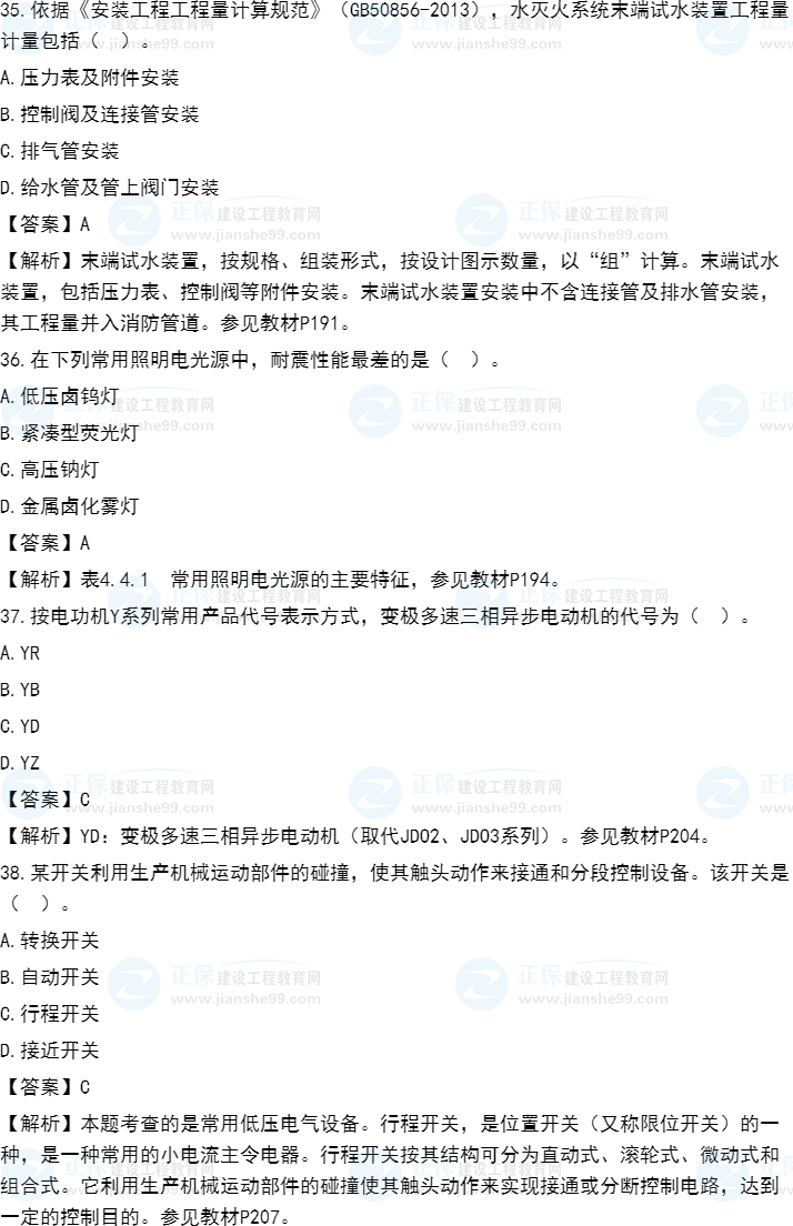 2021年一級(jí)造價(jià)師《安裝計(jì)量》試題答案及解析31-40